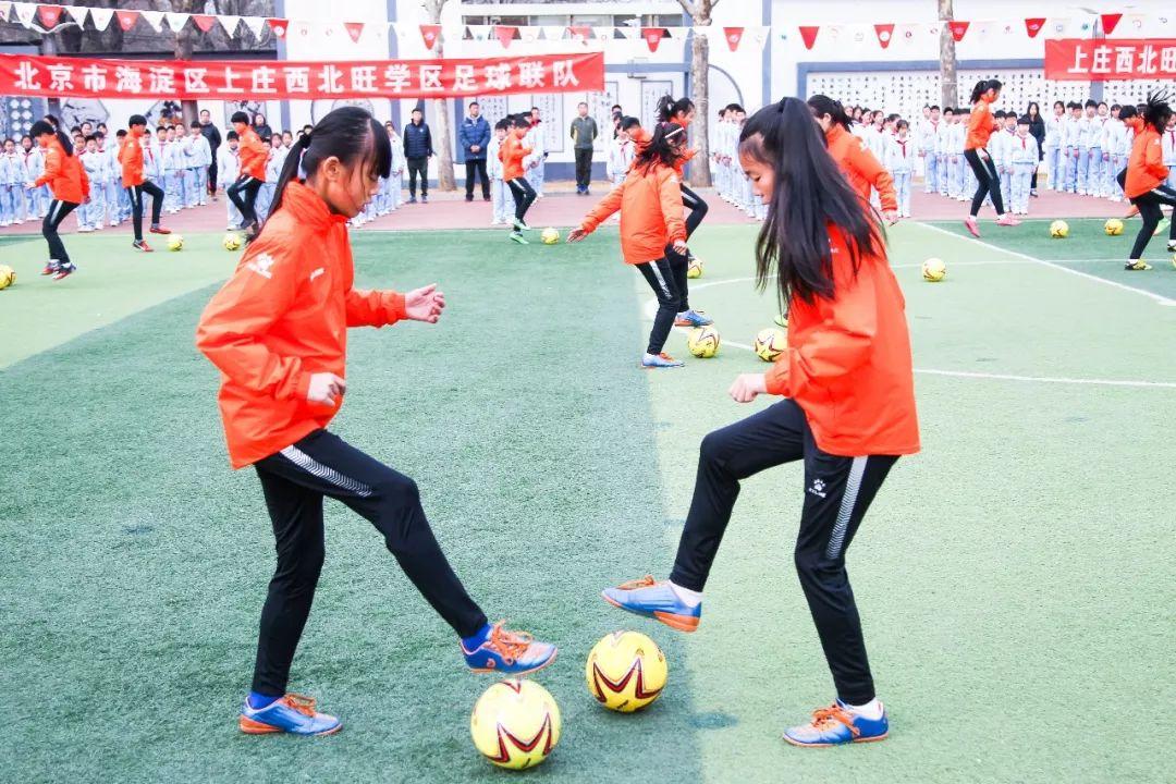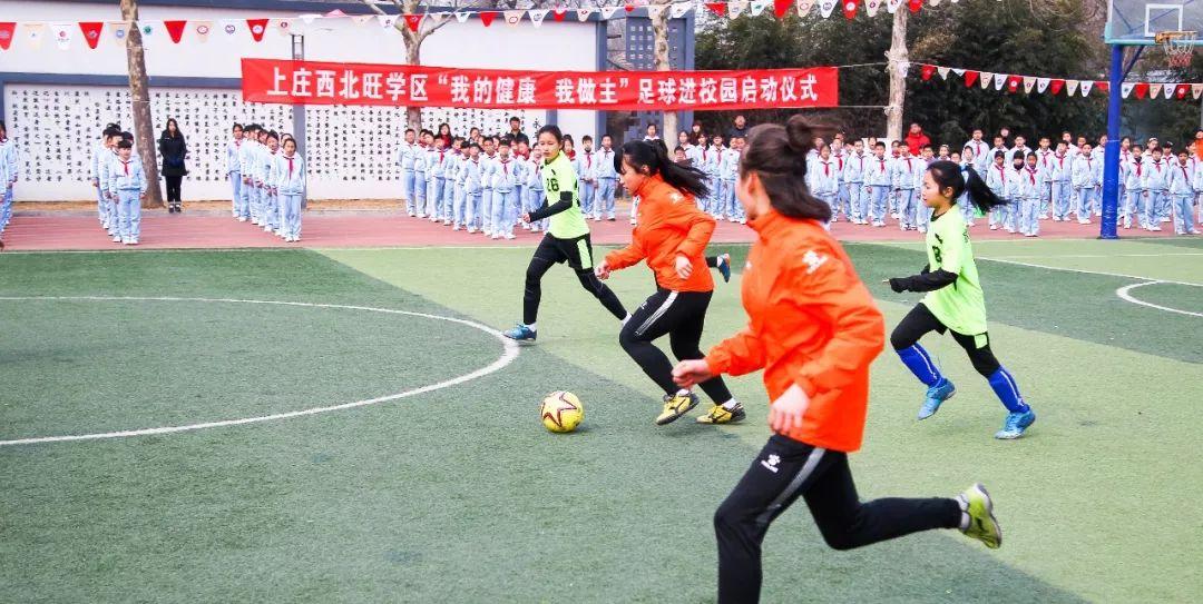 3月21日,在海淀区永丰中心小学,随着学区内11所学校接过足球训练营旗帜,上庄西北旺学区足球进校园活动正式启动。