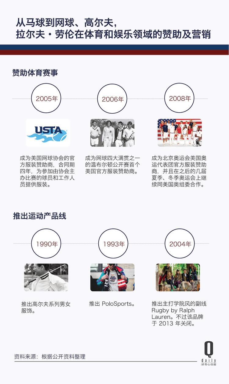 对美国中产阶级心目中幻想生活的总结,成为拉夫劳伦后来拓展子品牌、营销的思路。从网球比赛到高尔夫、从 Ralph Lauren Home 系列里的奥斯曼软垫凳,到 Polo Western 里的鲜红牛仔靴,无一例外。用现在时髦的词来形容,拉尔夫·劳伦慢慢变成了一个什么都做的“生活方式品牌”,销售服饰、配饰、家居用品。这一过程中,也有一些表现不佳的子品牌被砍掉,如定位橄榄球运动衫的 Ralph Lauren Rugby。