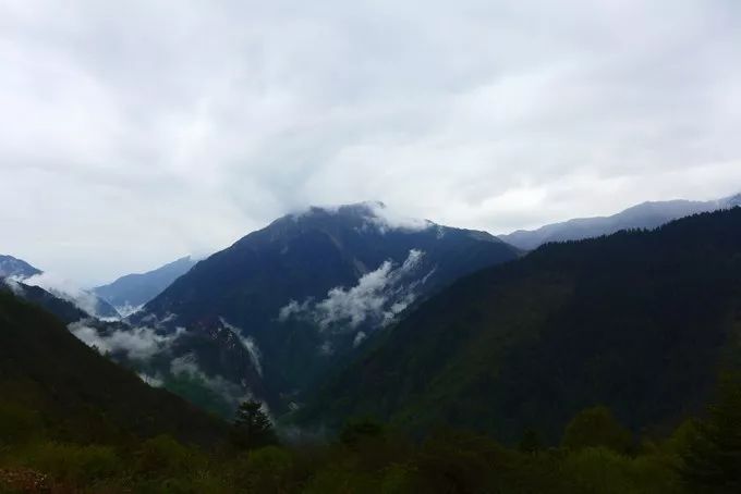 午餐后,我们出发翻越巴郎山。山由近及远呈现出绿色、褐色、黛色 ,车在雾中穿行,云在脚下流淌。我被美丽的景色吸引,不时探出窗外去拍照。