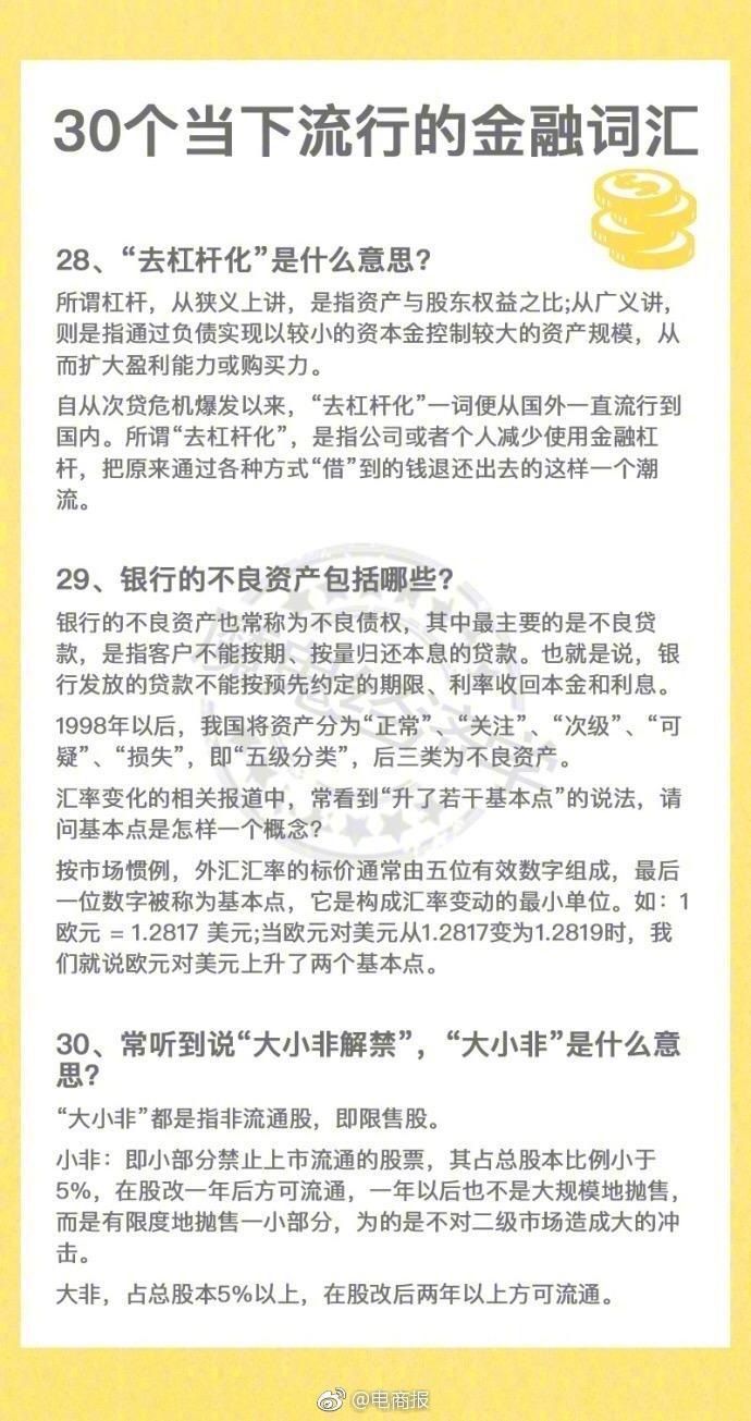 什么是影子银行?什么是离岸金融?常在一些文章中看到“金融脱媒”一词,能否解释一下它的含义?......你应该知道的30个当下流行的金融词汇!