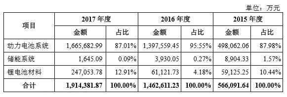 宁德时代按产品划分的主营业务收入