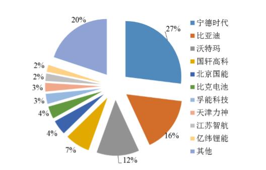 2017年国内动力电池市场份额(销量)。数据来源:GGII