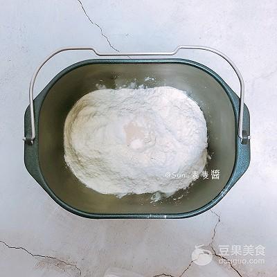 1、原料除黄油外全部投入面包桶内,面包机和面15分钟