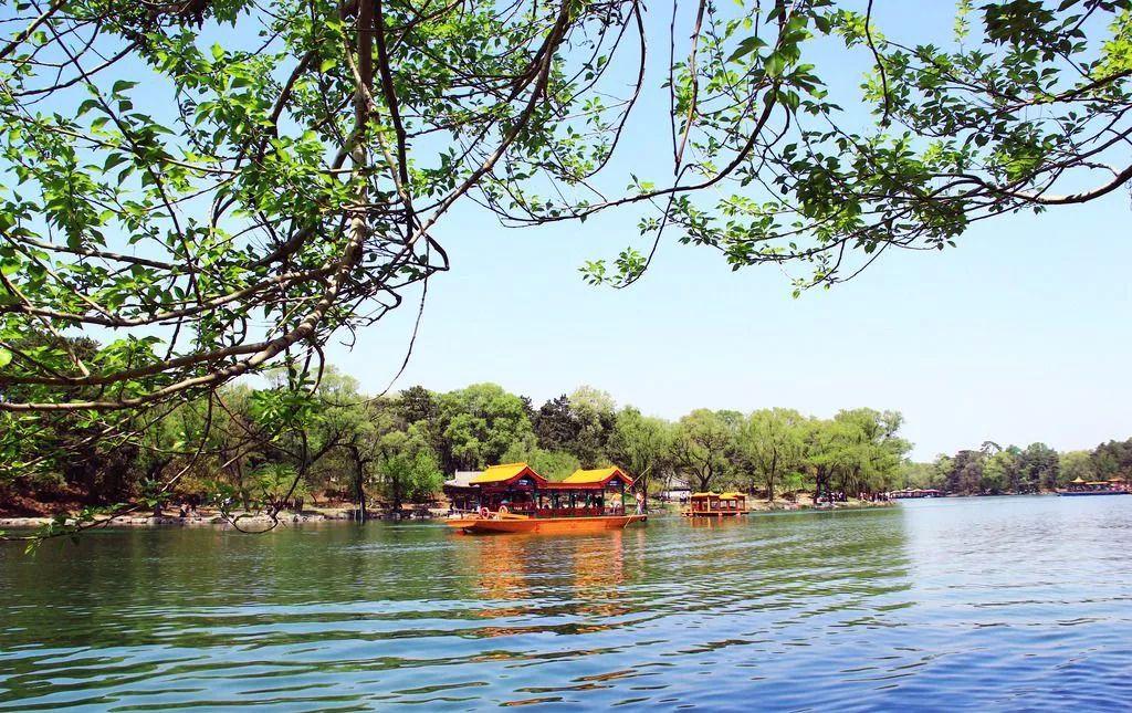 湖泊区在宫殿区的北面,湖泊面积包括州岛约占43公顷,有8个小岛屿,将湖面分割成大小不同的区域,层次分明,洲岛错落,碧波荡漾,富有江南鱼米之乡的特色。