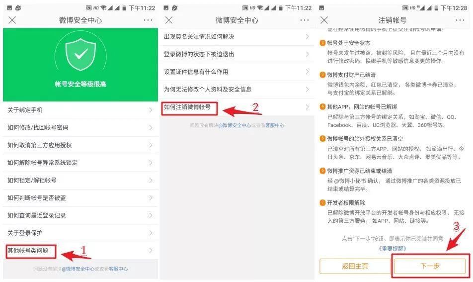 依次打开“设置-账号与安全-微博安全中心-其他账号类问题-如何注销微博账号”,完成注销账号需要满足以下7个条件: