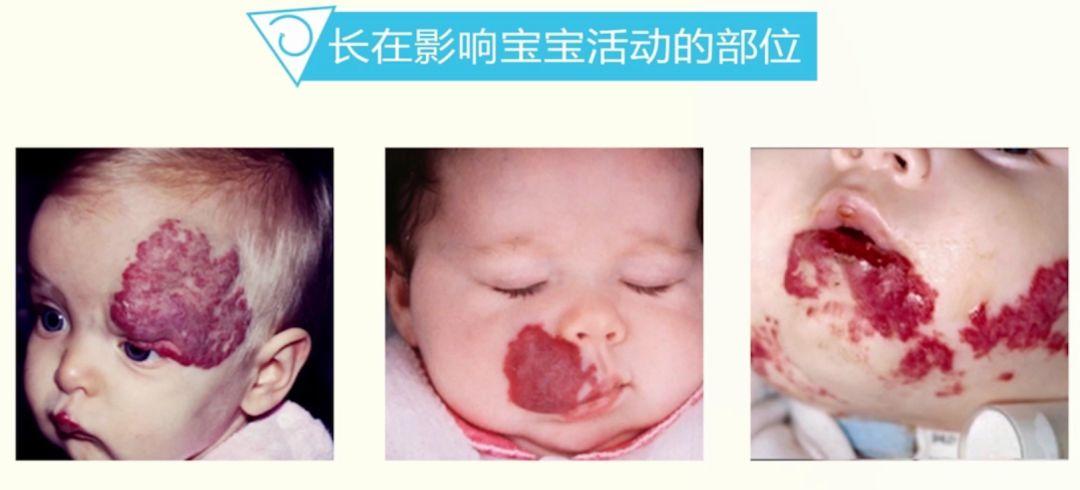 比如眼周的血管瘤影响视力,口周或口腔内的血管瘤会影响宝宝的呼吸和进食。