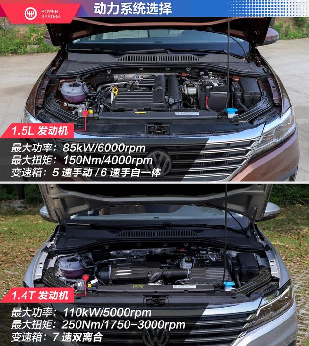 动力方面,全新一代朗逸有1.5L/1.4T两款动力可选,1.5L自然吸气发动机最大功率85kW,1.4T涡轮增压发动机最大功率110kW。传动方面,匹配5速手动、6速手自一体以及7速双离合变速箱。悬架方面与老款朗逸车型保持一致,为前麦弗逊独立悬架,后复合扭转梁式半独立悬架的组合。