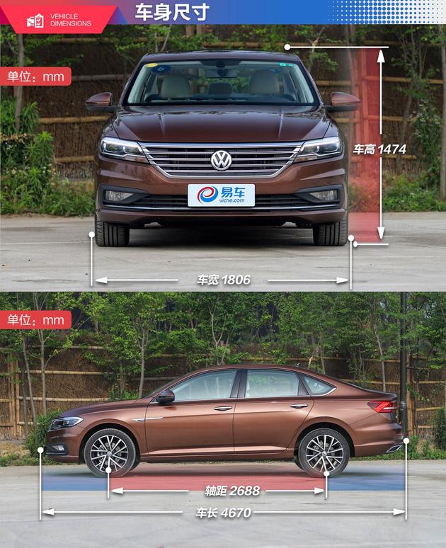 4670/1806/1474mm的车身尺寸相比现款车长增加了65mm、车款增加了45mm、车高增加了14mm,轴距增加了78mm达到了2688mm,比速腾的2651mm还要长。