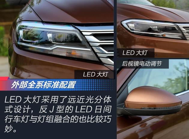 从全系的标准配置上可以看出朗逸非常会揣摩国内消费者的购车心理,最低配的车款在外观配置上也装备了近年流行的LED大灯和LED雾灯,像电子驻车、自动驻车以及胎压监测这些成本低逼格儿高的配置就更不用提了,对于部分国内消费者来说这些配置的“诱惑”根本挡不住。