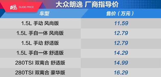 易车-新车型录手册5月25日,新一代朗逸正式上市,全系共推出6个车款,官方指导价区间为:11.59-16.29万元。新一代朗逸基于MQB平台打造,采用了大众最新的家族式设计风格,车身尺寸上有增加,看起来也更为大气,动力上有1.5L/1.4T两种动力形式可以选择,原有的1.6L车型被本次推出的1.5L车型替代。