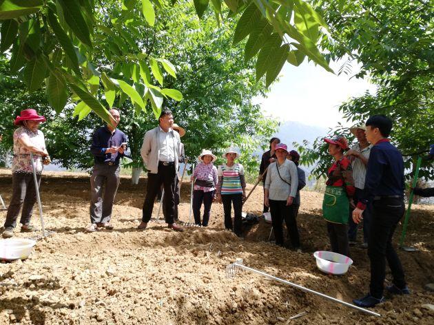 然而,随着近两年核桃价格节节下跌,合作社产业结构单一这一现实,为不让社员利益受损,王忠林支书积极创新思路、大胆探索,组织村委班子召开会议,走访村民征求意见,决定在管护好原有泡核桃面积的前提下,采用“以短养长、长短结合”的方式,发展林下中草药种植,截止目前,横山村已种植*党**参500亩,重楼20亩,白芨10亩,桔梗100亩,木香50亩,工业*麻大**360亩。