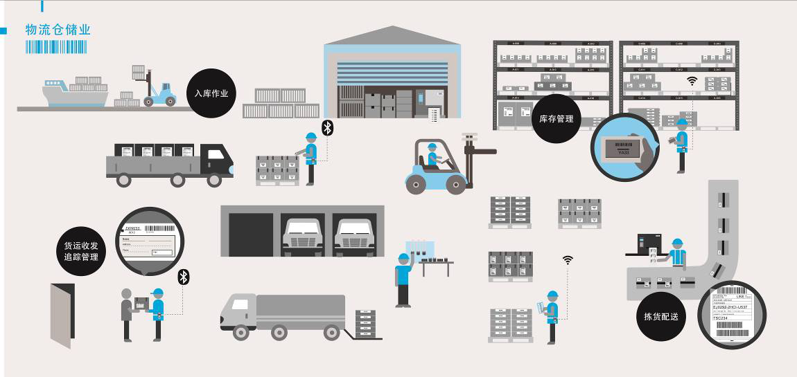 在物流业,通过使用TSC条码打印设备可以实现精准处理产品入库存放,随到随标,货物信息一目了然;更避免了人工书写会产生的错误,随时掌控货物的进出信息。