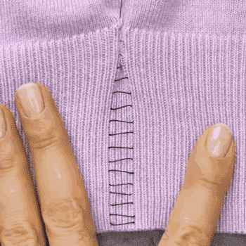 毛衣越穿越松别担心,用梯形针法一缝就解决!所谓梯形针法就是一直像搭梯子一样左右穿针。