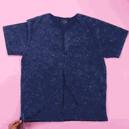 T恤大了怎么穿出新模样?不如剪一刀,变成时髦开衫!T恤摊开,从中间剪一个Y字形。