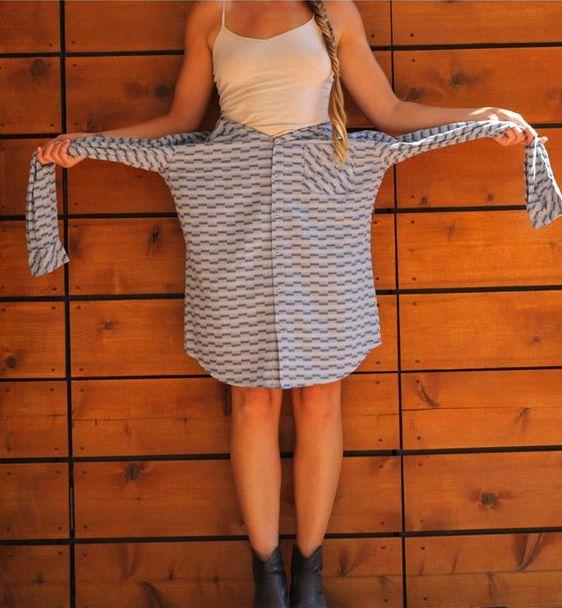 谁说衬衫一定要当上衣穿,衬衫也可以穿成裙子。