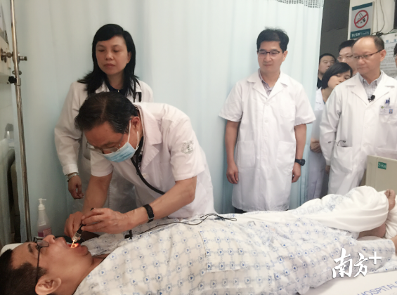 6月29日下午,钟南山院士携广州呼吸研究院多学科团队到深圳市人民医院呼吸科病房,为邓先生和另一名呼吸病患者进行了查房。随后,在医院外科大楼学术报告厅,又联合市人民医院多学科团队专家,并网络连线陆军军医大学附属第二医院呼吸科专家,就这两例疑难病例进行了多学科讨论。最后,专家们终于明确了病人的诊断和治疗方案。