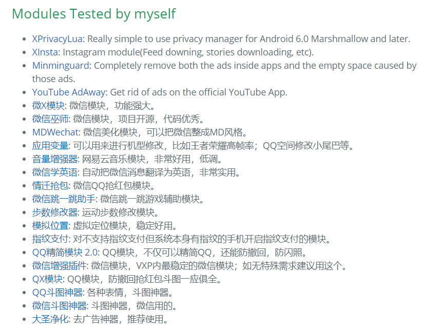 比如可以做到 QQ 微信的消息防撤回,屏蔽某些应用里烦人的广告,模拟手机的定位,解除抖音时间限制,更改机型来启用王者荣耀高帧率模式,不需要主题从底层美化手机系统等等,还有数不清的高级功能,需要你去自行发掘,这里就不多说了。