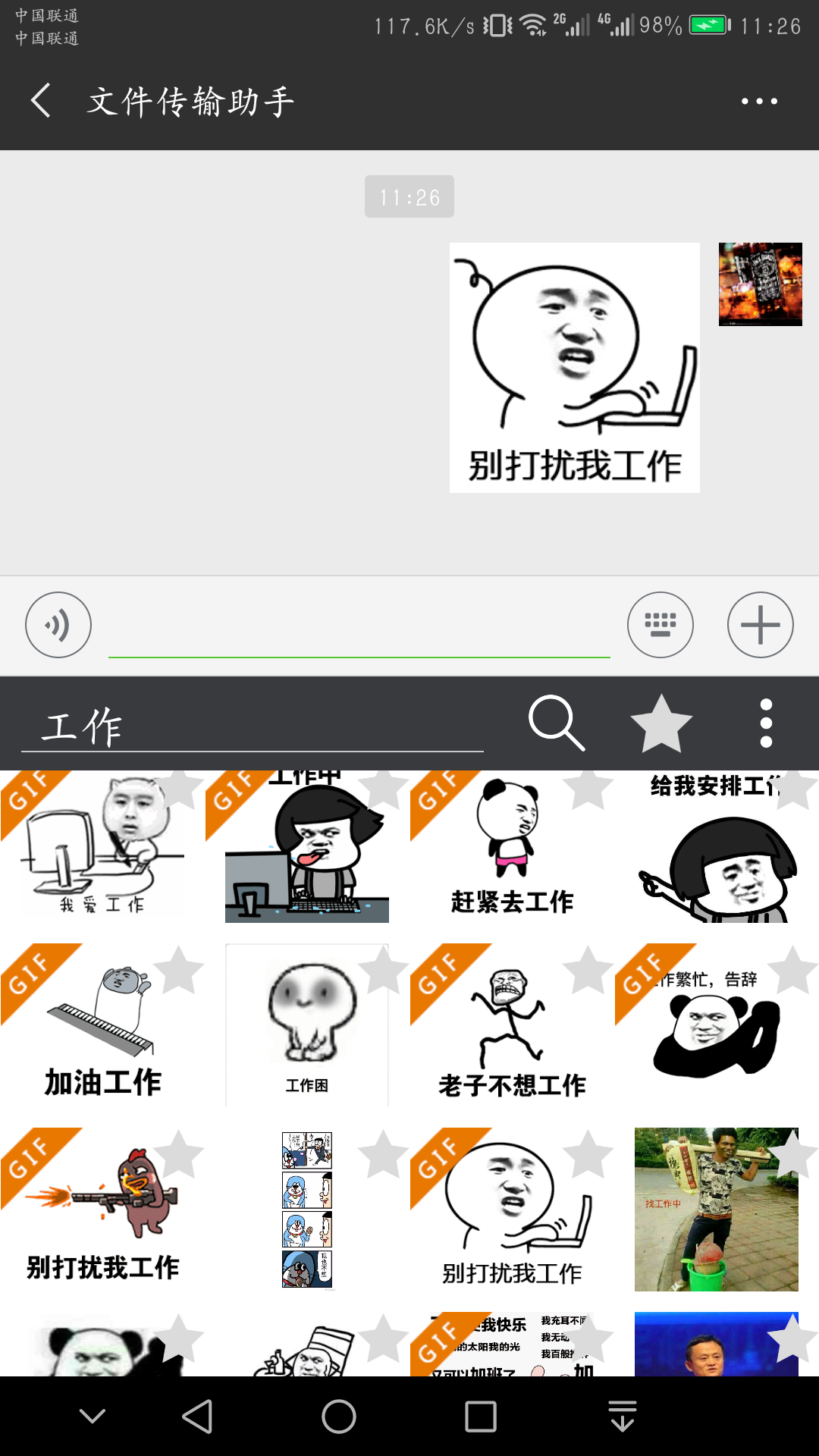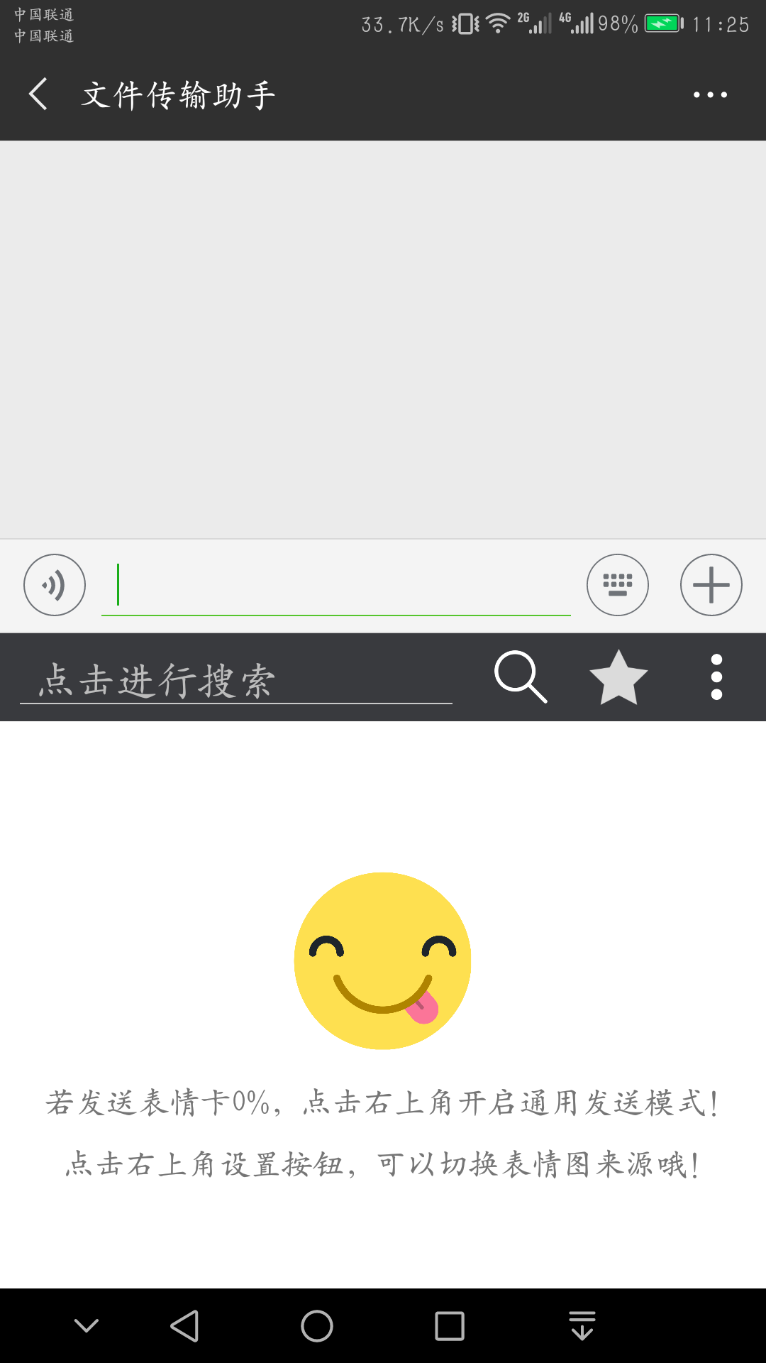 微信斗图五设置界面,直接在聊天界面长按表情符号即可打开,搜索点击发送一步到位,非常的方便。