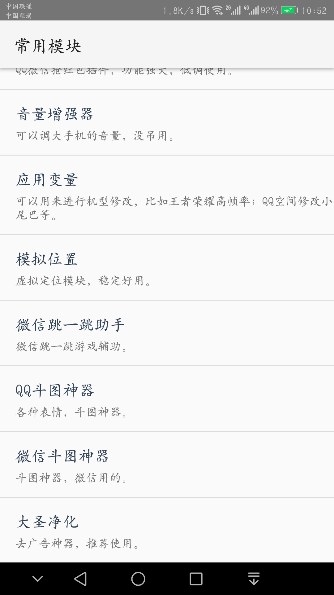 最后一步,启动 APP,模块就已经生效了,根据每个模块不同的特性,有的 APP 中会增加设置入口,有的则需要打开模块程序更改设置。