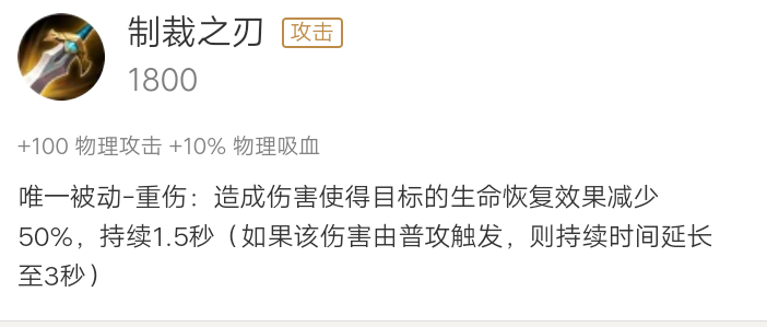 制裁之刃可以对敌方英雄造成重伤 使其恢复效果减少50%