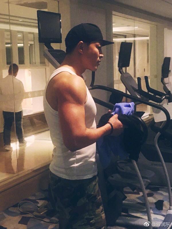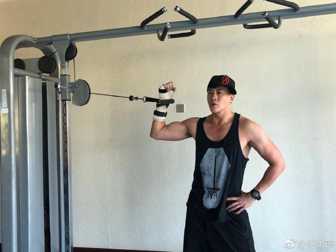 网友都觉得何润东很“身残志坚”,受伤的手绑上东西,只用手段的力量,他还是在坚持健身,肱二头肌相当明显。估计这也算他康复训练的一部分吧。