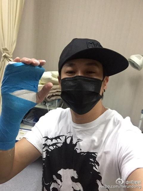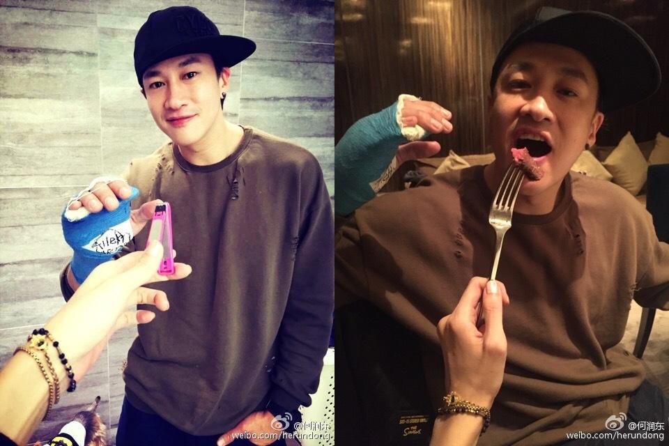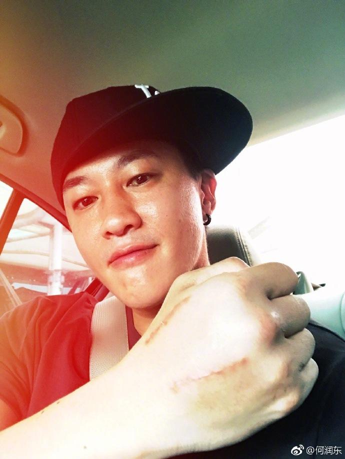 前几天才去掉绷带,何润东手背上的两条疤痕又长又清晰,将伴随他一辈子是必然的了。