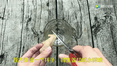 切几片生姜末放在杯子里,然后倒适量的小苏打,最后加入清水稀释一下,静置10分钟。