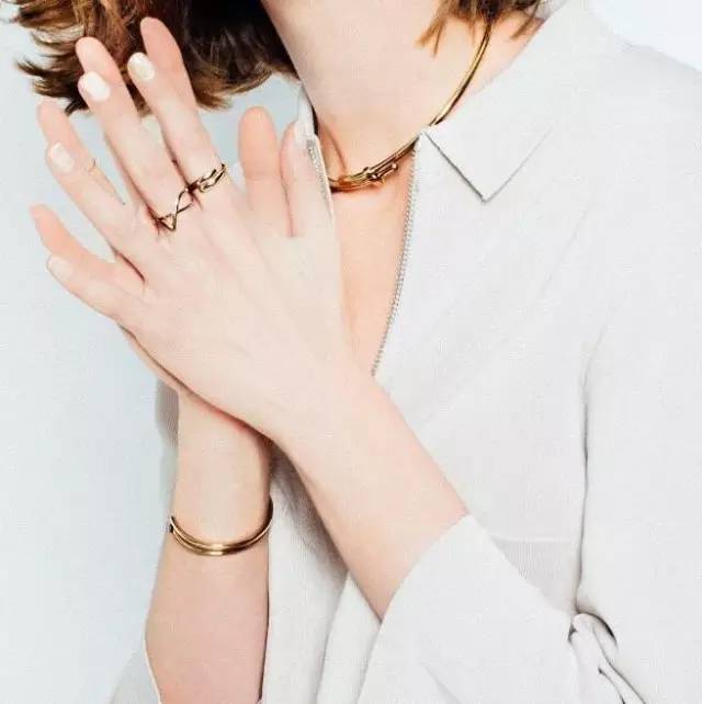 饰品多采用的是14K或18K金,金属与几何造型相结合,极简风却是造型吸睛度上的加分项,搭配平庸的白T也照样出彩。