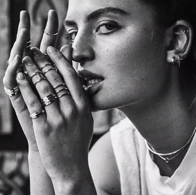 而且一般戴他们家品牌的戒指,一戴都是一串儿,特别有个性。