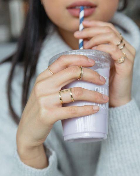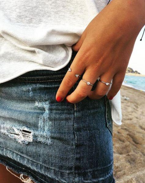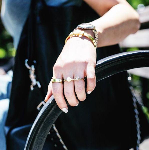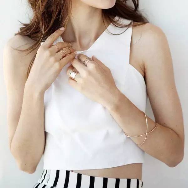 别小看极细的戒指,它们叠在一起也能搭配出浓重的时尚感哦。