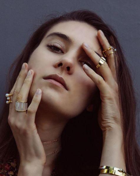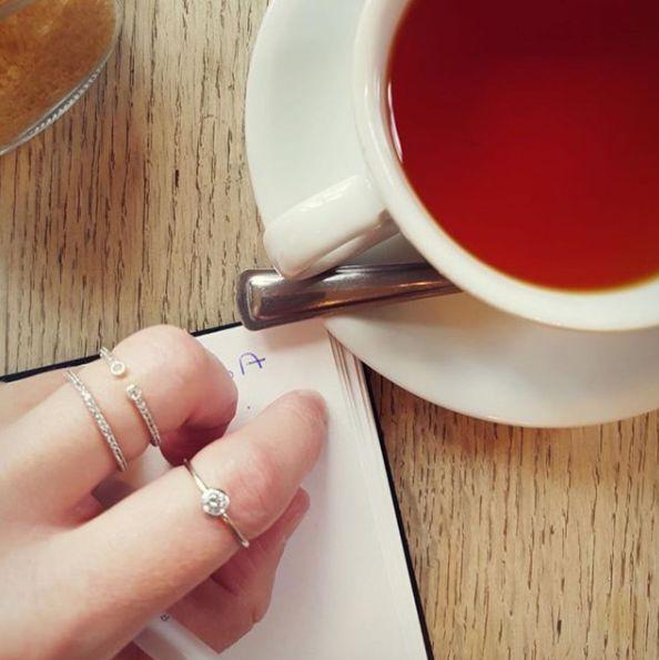 她家主打极细的戒指,颇有午后在香榭丽舍大街的咖啡厅喝一杯的法式慵懒感。纯白衬衫或者素T搭配这个戒指,气质一下就出来了。