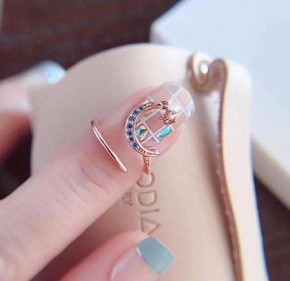与传统戒指的佩戴位置不同, CLEODIA 有种戒指因为是佩戴在指甲处,或手指的前两个关节之间等部位,所以被称之为指尖戒或关节戒。
