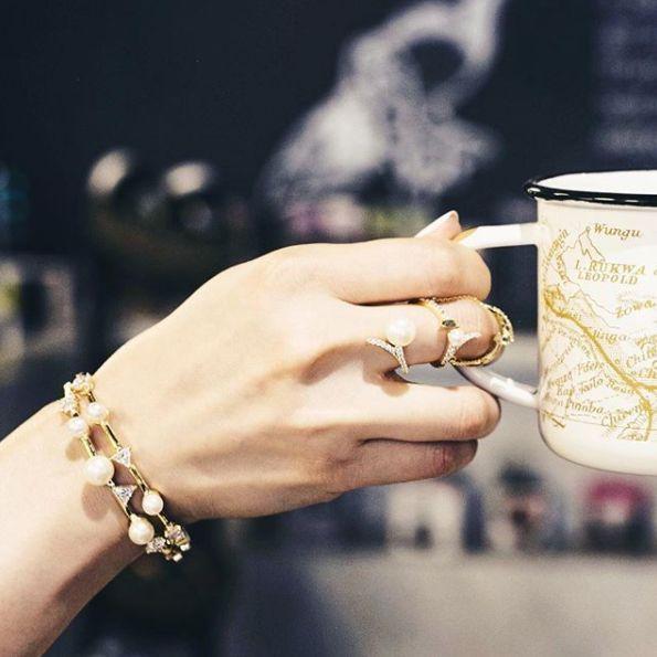 来自纽约的Avec New York。不拘一格的时尚创意设计深得人心,人气珍珠加上钻石U型戒指,还有彩色钻石装饰的金色手链……你也一定会爱上这些精致潮物。