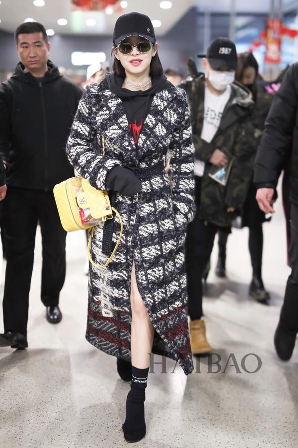 图片延伸阅读:明星街拍机场街拍华语明星街拍Chanel大衣格纹印花帽衫(卫衣)宋茜Vetements
