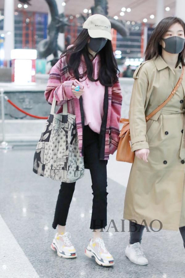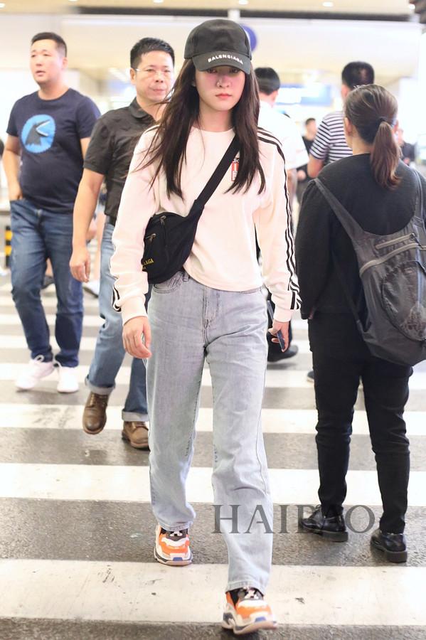 张天爱上海机场街拍