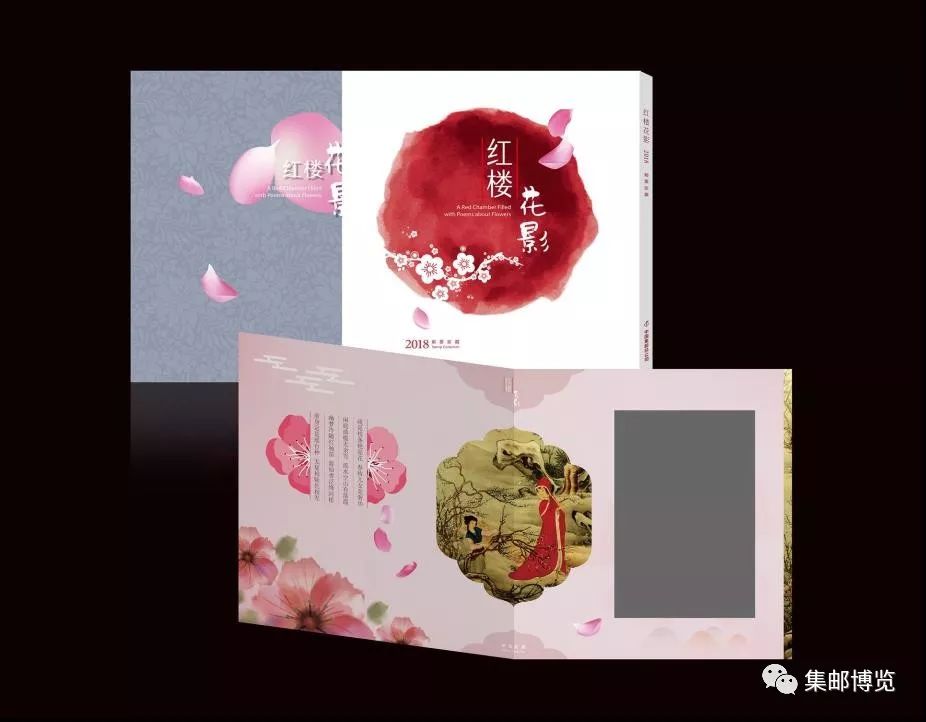 邮品亮点:《红楼花影》将新邮大版、小型张配以花卉类的系列邮票,并辅以红楼梦中的诗词及工笔绘画表现红楼梦中千姿百态的女儿同万紫千红的花卉。产品还特别配有二枚版个性化邮票本票册,展现邮票创作的历程。