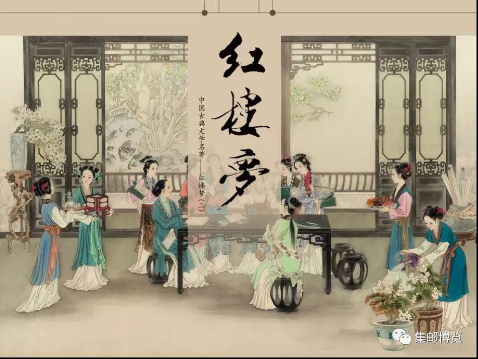《红楼梦》作为世界文化中最令人喜爱的古典作品之一,也是邮票选择的热门主题。我国就有三次发行该主题的邮票,第一次是1981年人物画家刘旦宅的《金陵十二钗》,侧重于人物形象的刻画;第二次是2014年国画家戴敦邦创作的《中国古典文学名著——红楼梦》系列第一组,第三次是2016年工笔画家萧玉田创作的《中国古典文学名著——红楼梦》系列第二组,2018年4月22日即将发行的是该系列第三组,依然由萧玉田创作,这组邮票侧重于《红楼梦》经典场景的再现。