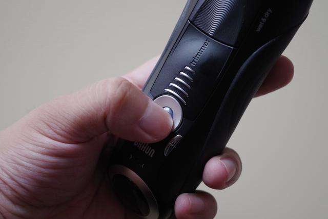 电源按钮上方为长须修剪器开关。