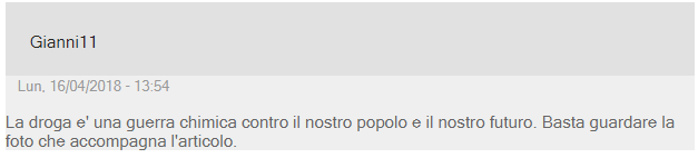 网友“Gianni11”表示:“*品毒**是我们的民族乃至我们的未来都将要面对的一场化学战争。看看这条新闻的配图(上的那些人)就明白了。”