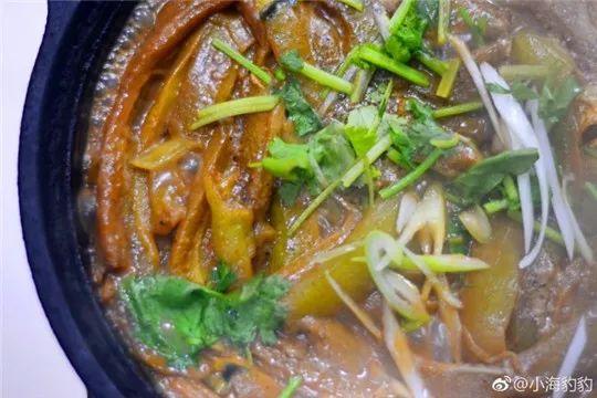 石锅茄子跟鱼一起炖的,说是黄鱼,