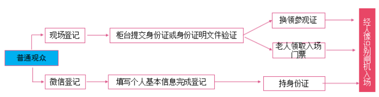 2.也可到现场微信登记,填写个人基本信息完成登记,出示已登记信息并持身份证经人像识别闸机入场观展。