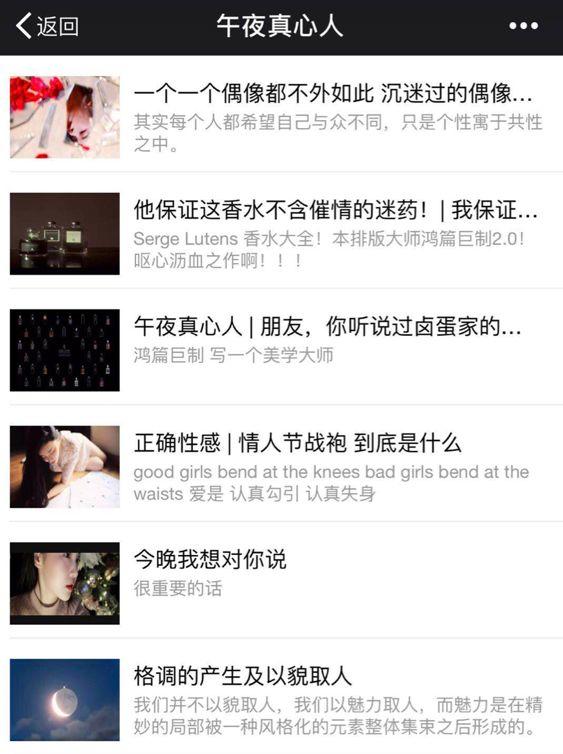 事实上,最初张辛苑创办公众号,是颇有重回博客之意的,因为公众号能实现纯个人化的书写。她公众号中“午夜真心人”这个栏目就是她曾经的博客名。