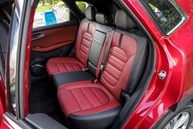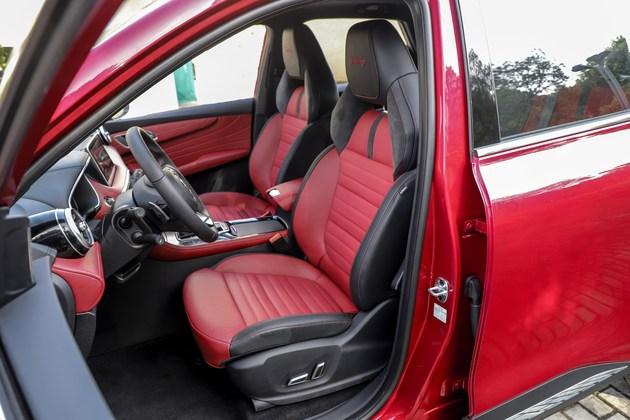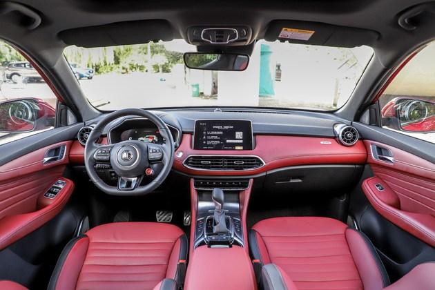 内饰部分,名爵HS的运用的配色风格极为的大胆和年轻,大面积的红色让你感受到十足的运动感。氛围灯可随音乐变换颜色和亮度,同时可以与大屏进行交互。此外,为了追求更加极致的运动,名爵HS还配备了Bader运动座椅。