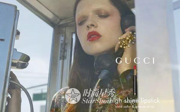 在平面广告与广告片中,模特Sedona Legge置身于电话亭内,手握听筒,镜头集中在她润泽鲜明的红唇之上,如梦似幻的阳光与蓝天映出她周围的城市景象,尽显性感妩媚女士气质。这幅由摄影师Petra Collins构想的意景,以慵懒复古的氛围,与模特自信眼神中流露出的摩登态度形成鲜明对比。艺术指导ChrisSimmonds则将城市的美丽景色呈现于广告之中。在电话亭内,一支打开的Gucci High ShineLipstick炫彩闪漾唇膏置于一侧,搭配上这位摩登女郎浪漫的时尚配饰——水晶及珍珠复古耳环和粉色太阳镜,营造出唯美典雅的感觉。