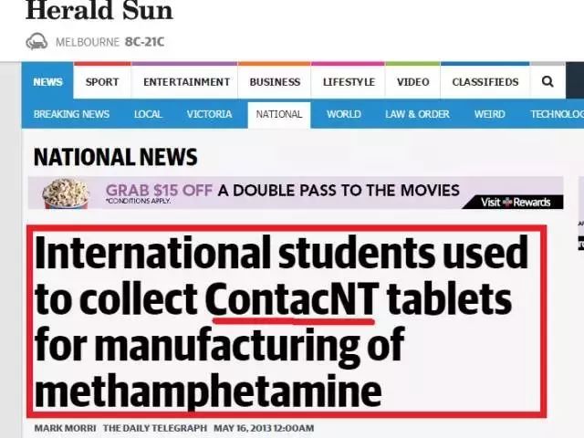 当时,澳洲当局缉获了1.3吨*私走**入境的感冒药康泰克(ContacNT),它们预计可以制作成400公斤的*毒冰**,批发总价值大约为7800万元,街头价值则高达3亿元。