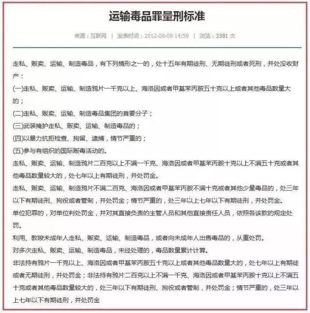 众所周知,中国对于*品毒**案件处罚力度非常强硬。而因为本案涉及携毒量大,当事人可能面临最高刑罚一死刑!