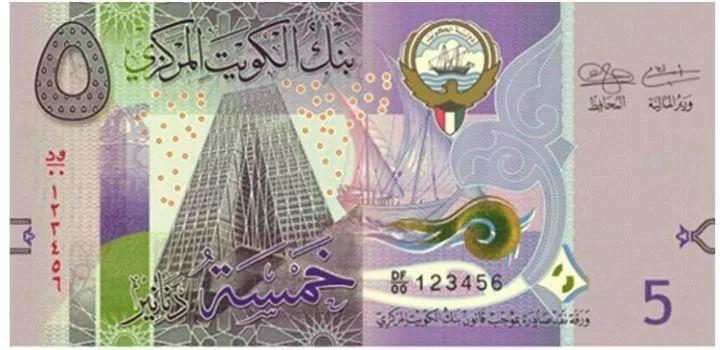 2014年6月29日,科威特中央银行第六版纸币。中国建筑工程总公司承建的科威特中央银行新总部大楼被印在了在5第纳尔纸币上。