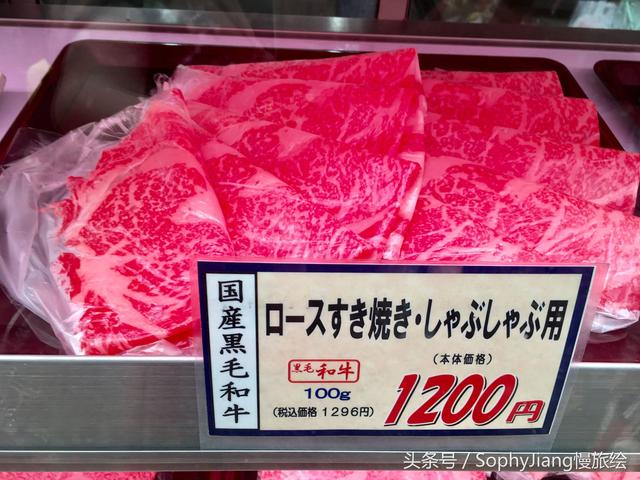 来黑门市场,不得不品尝日本和牛肉,最知名的是神户牛肉、松阪牛肉、京都牛肉等,都属于黑毛和牛的种群。大理石状的雪花油脂纹理和入口即化的口感是和牛的主要特征。神户牛肉只有在日本才能吃到正宗货,即便在当地购买也不便宜,和牛片含税价格在人民币约80元/100克。