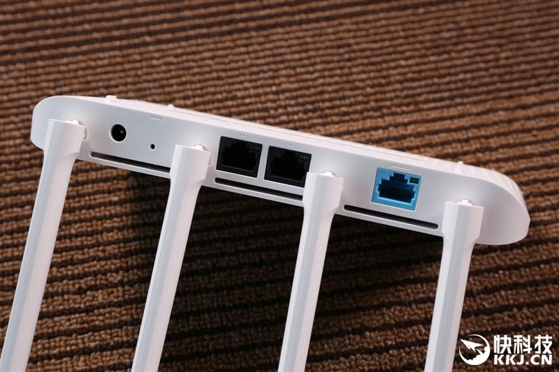 小米路由器4配备电源线、重置键,以及一个WAN口以及两个LAN口,均是千兆网口,可以充分发挥100Mbps/200Mbps,甚至500Mbps带宽。