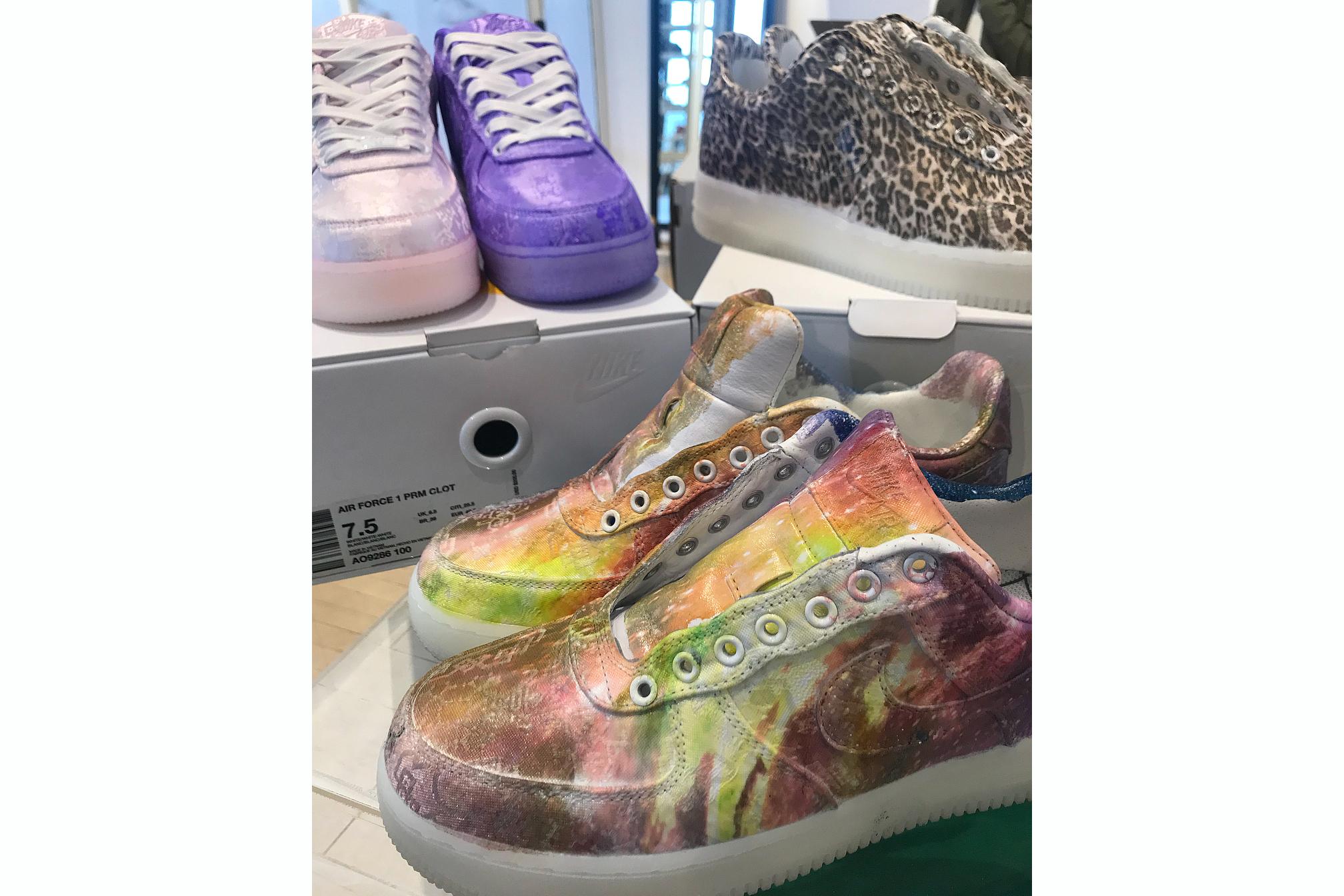 CLOT x Nike Air Force 1「Silk」。最近我们联合了曾经也在纽约和洛杉矶与 Nike 合作过的 MAPLEWOOD MFG 一起,为新加坡的 Dover Street Market Pop-Up 特别制作了 35 双 Hydrodipped 版本的 Silk Air Force 1。
